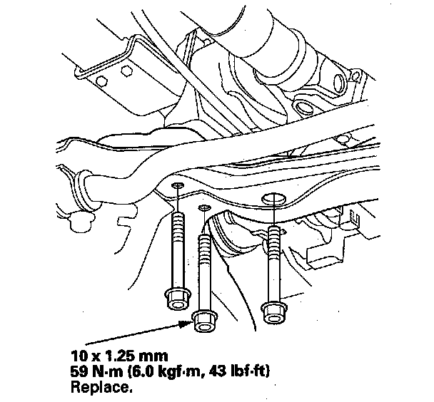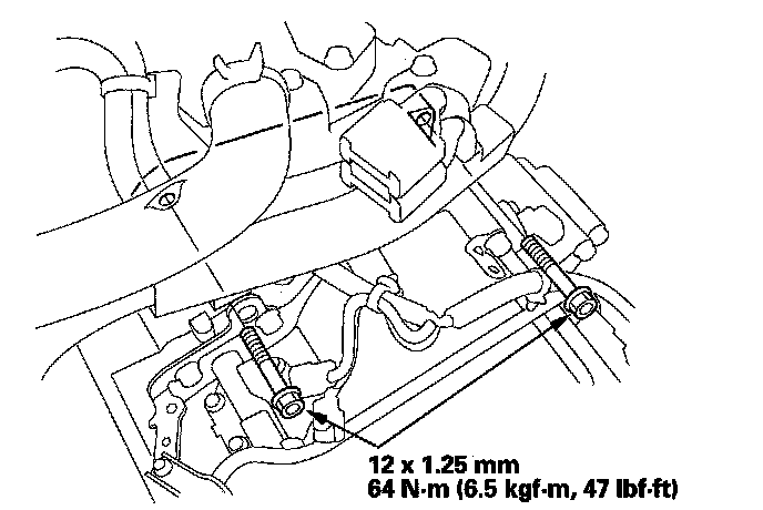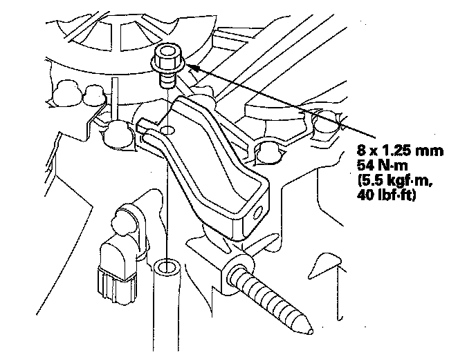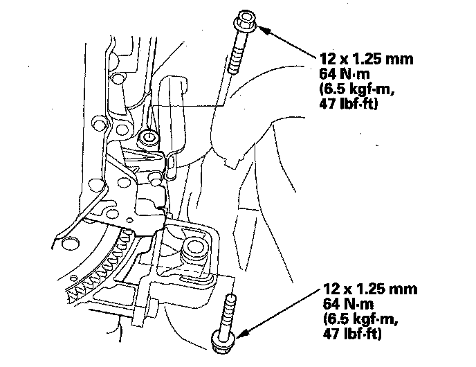 54. Tighten the transmission mount bolt to 54 Nm (5.5 kgf-m, 40 lbf-ft), tighten the rear mount bolt to 64 Nm (6.5 kgf-m, 47 lbf-ft), and lastly tighten the front mount bolt to 64 Nm (6.5 kgf-m, 47 lbf-ft).