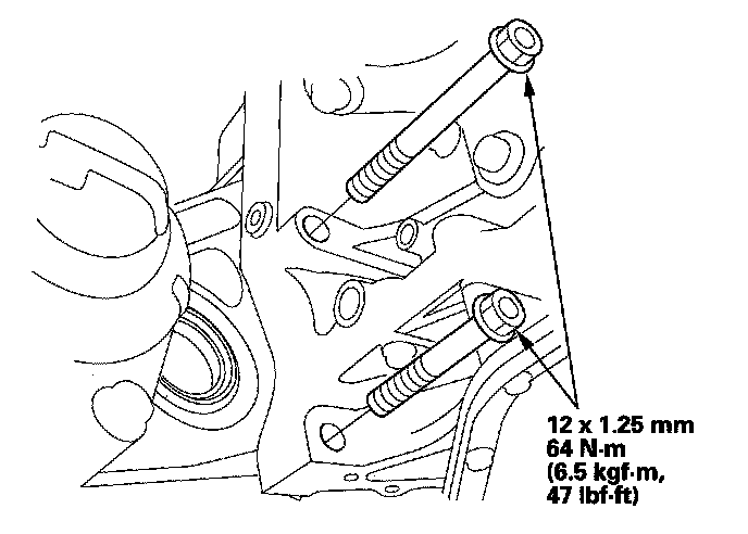 9. Install the transmission housing front mounting bolts.