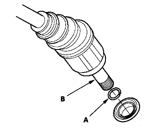 16. Install a new set ring (A) on the left driveshaft (B).