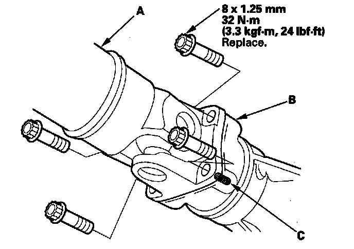 14. Install the intermediate shaft cover (C), but do not tighten the bolts.