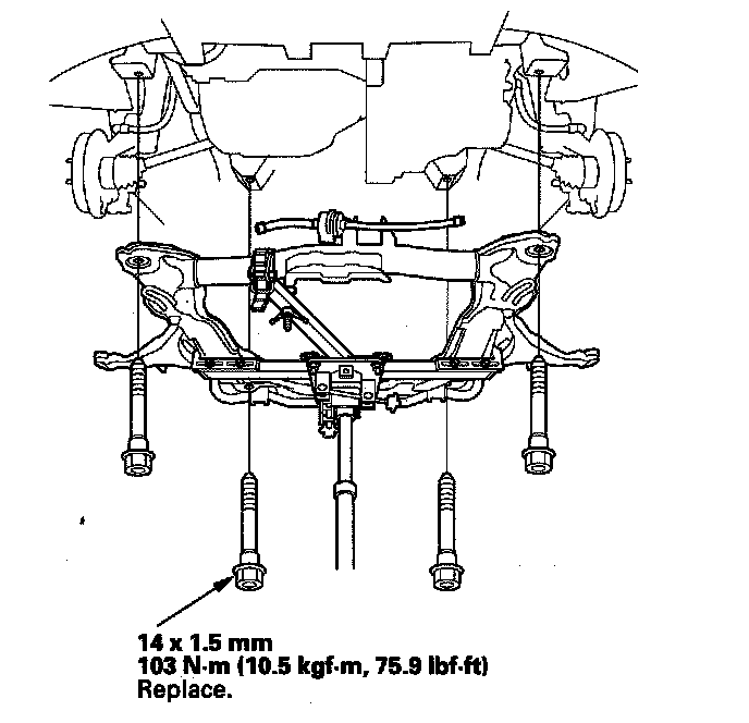 20. Loosely install the new front subframe mounting bolts.