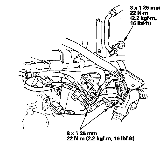 32. Install the removed bolts and the water line and harness bracket.
