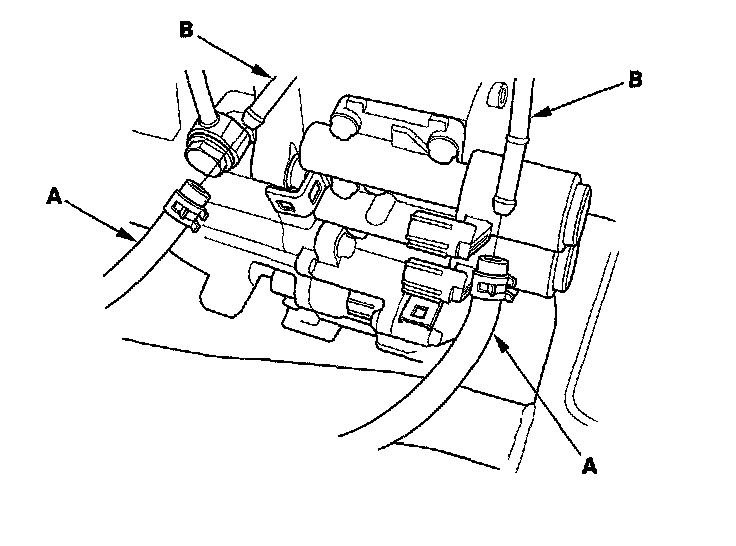 33. Connect the ATF cooler hoses (A) to the ATF cooler lines (B).