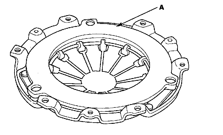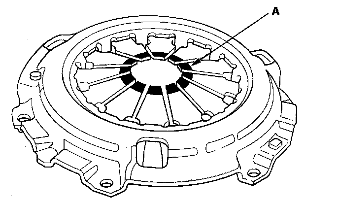 4. Inspect the fingers of the diaphragm spring (A) for wear at the release bearing contact area.