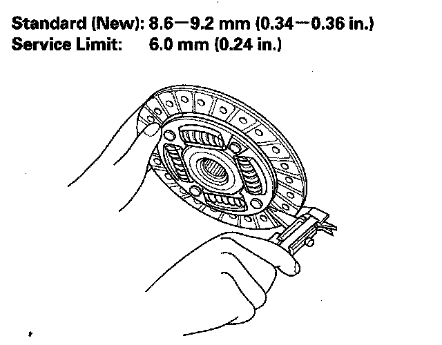 9. Measure the clutch disc thickness. If the thickness is less than the service limit, replace the clutch disc.