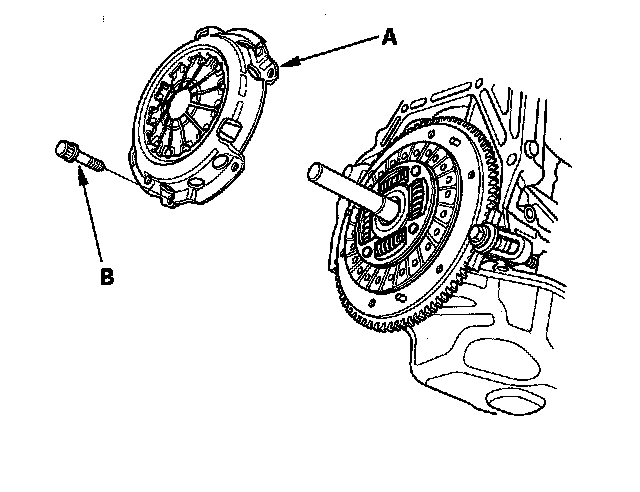 1. Temporarily install the clutch disc onto the splines of the transmission mainshaft. Make sure the clutch disc slides freely on the mainshaft.