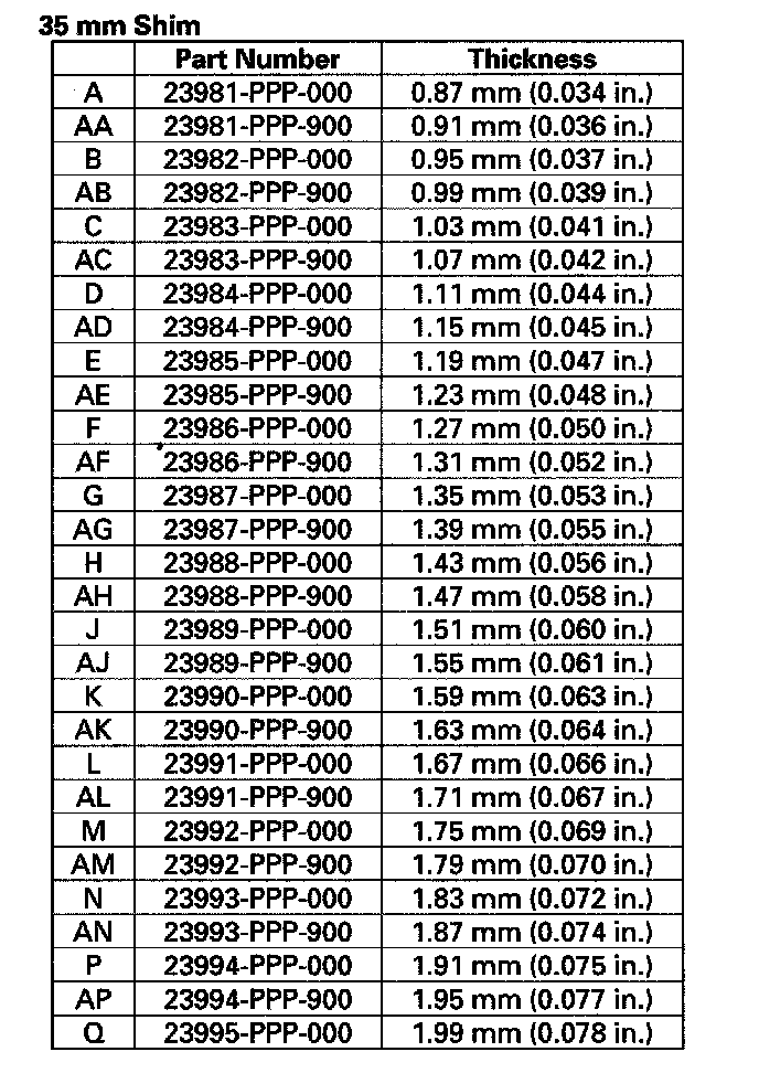 16. If the clearance is more than the standard, select a new shim from the following table. If the clearance measured in step 15 is within the standard, replace only the ball bearing.