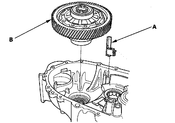 1. Install the magnet (A) and differential assembly (B).