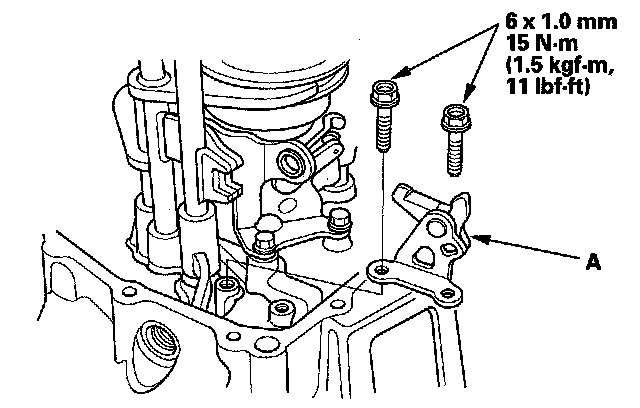 4. Install the reverse shift fork (A).