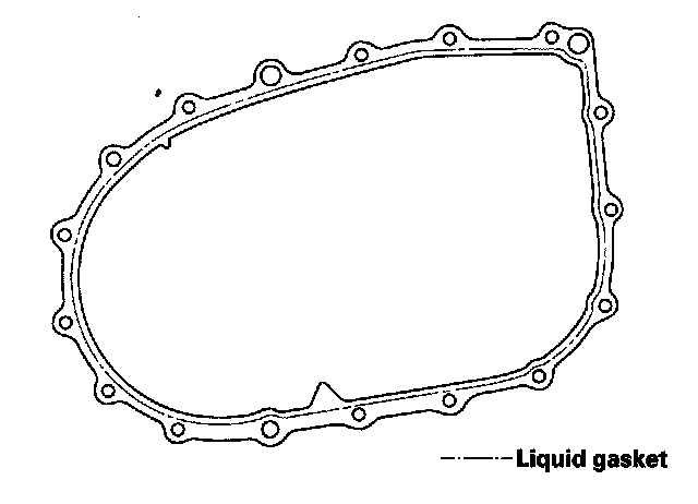 8. Clean any dirt or oil from the transmission housing sealing surface. Apply liquid gasket (P/N 08718-0001 or 08718-0002) to the sealing surface as shown.