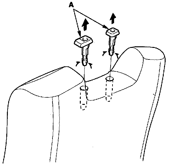 8. Pinch the tabs on the ends of the head restraint guides (A), and remove them from the seat-back.