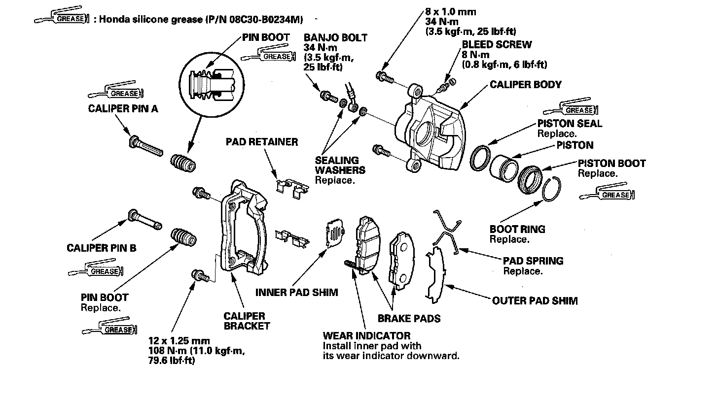 ^ Always use Honda DOT 3 Brake Fluid from an unopened container. Using a non-Honda brake fluid can cause corrosion and shorten the life of the system.