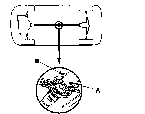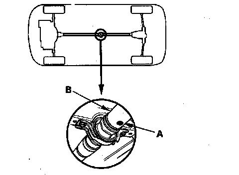 2. Make a mark (A) on either No. 1 or No. 2 propeller shaft (B).