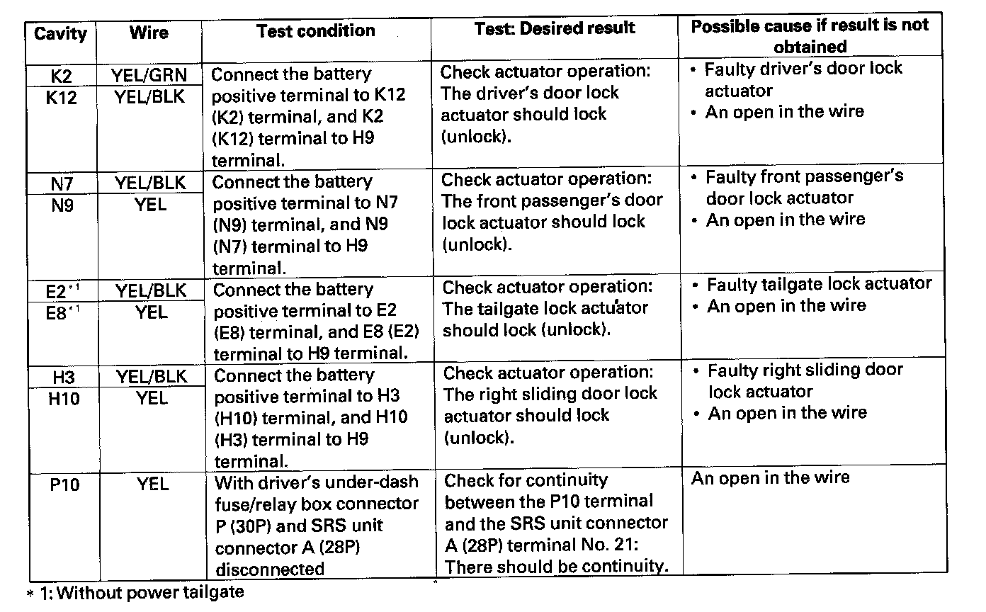 Control Unit Input TestNOTE: Before troubleshooting the keyless entry/security control system, troubleshoot the multiplex integrated control system first using B-CAN System Diagnosis Test Mode A.