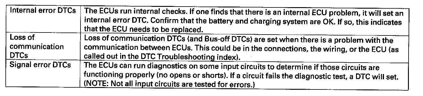 There are three types of DTCs used by the CAN networks.