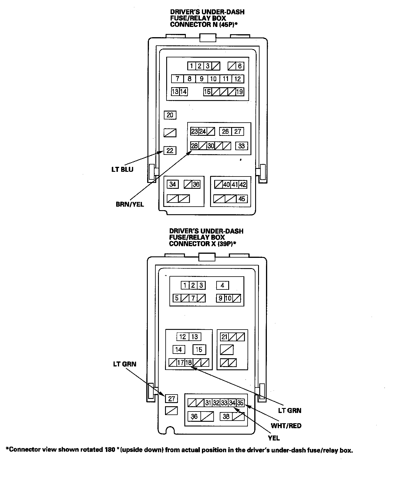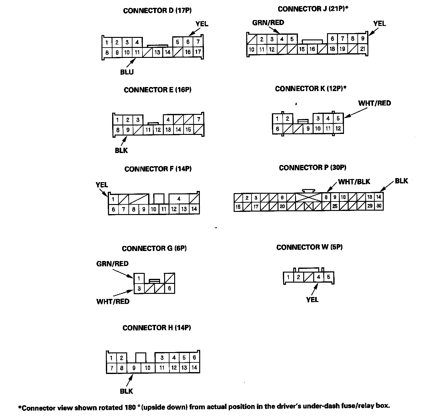 NOTE: Make sure the ignition switch is OFF before troubleshooting the driver's under-dash fuse/relay box connectors.