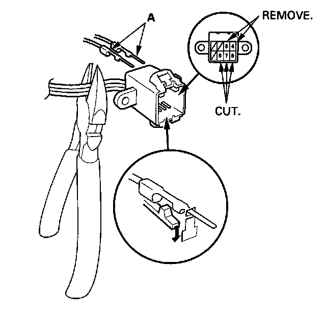 6. Cut the wire harness with wire cutters.