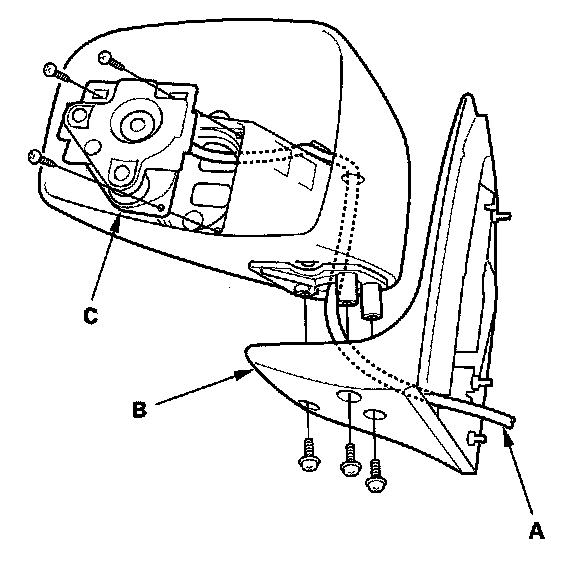 9. Remove the three screws and the power mirror actuator (C).