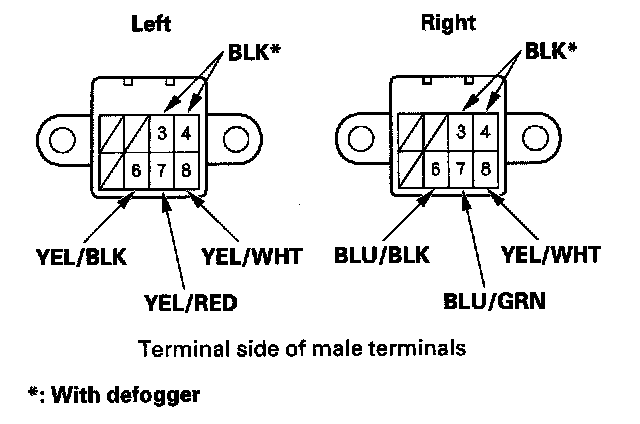 5. With mirror defogger: disconnect the No. 3 and No. 4 terminals (A) of the mirror wire harness from the 8P connector.