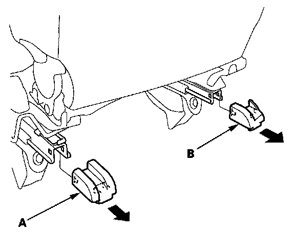 9. Passenger's manual seat: Remove the front outer seat track cover (A) and front inner seat track cover (B).