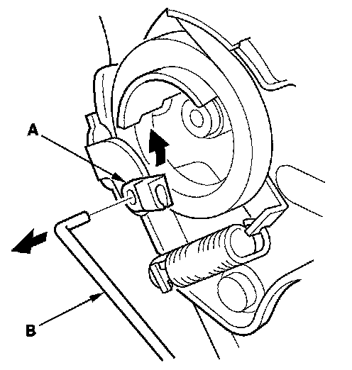11. Passenger's manual seat: Detach the rod fastener (A), then remove the recline rod (B).