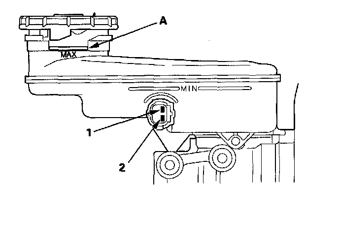 Brake Fluid Level Switch TestCheck for continuity between the terminals (1) and (2) with the float in the down position and in the up position.