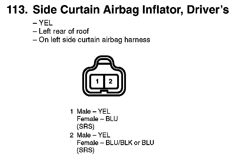 113. Side Curtain Airbag Inflator, Driver's:
