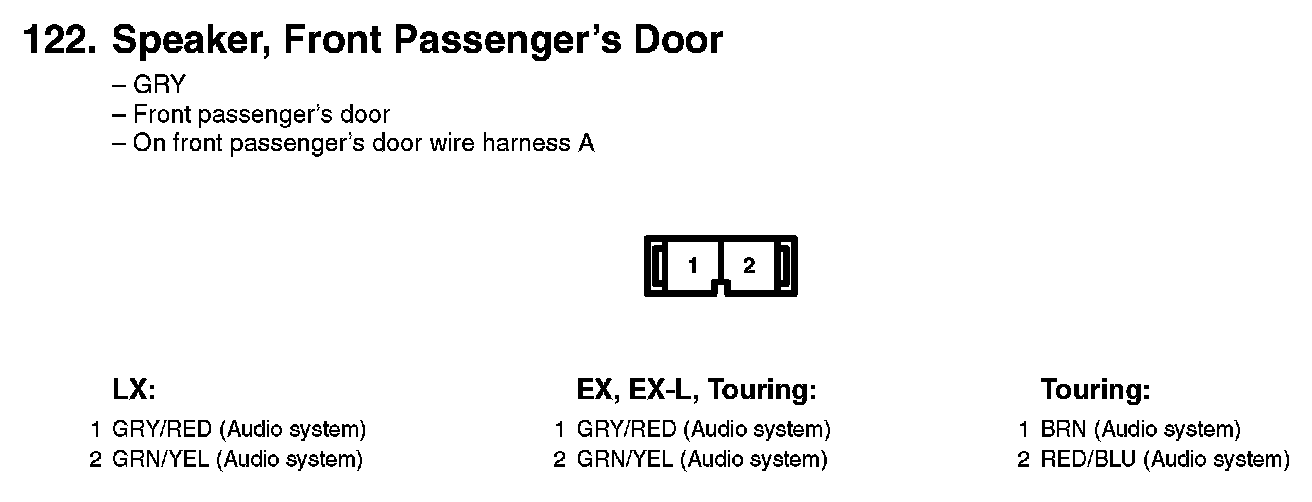 122. Speaker, Front Passenger's Door: