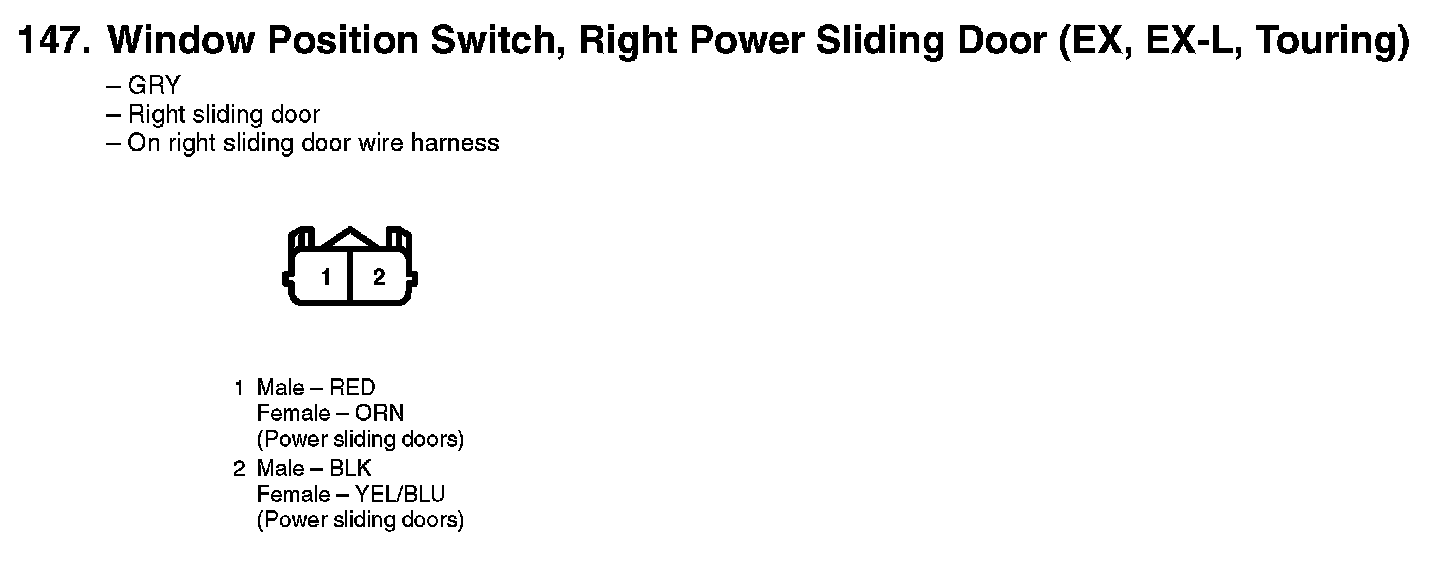 147. Window Position Switch, Right Power Sliding Door (EX, EX-L, Touring):
