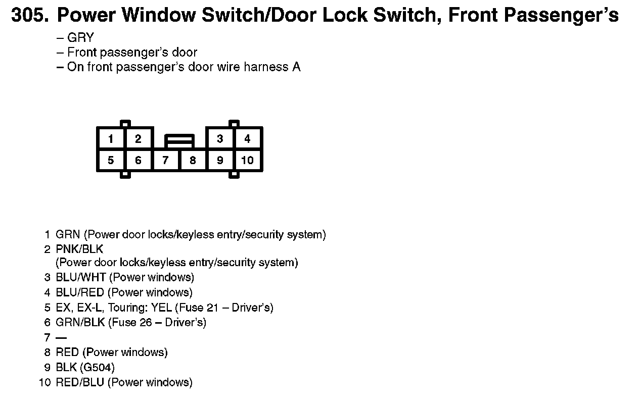 172. Door Lock Knob Switch, Front Passenger's (EX, EX-L, Touring):