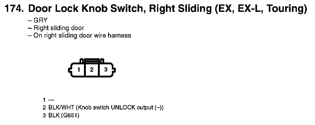 174. Door Lock Knob Switch, Right Sliding (EX, EX-L, Touring):