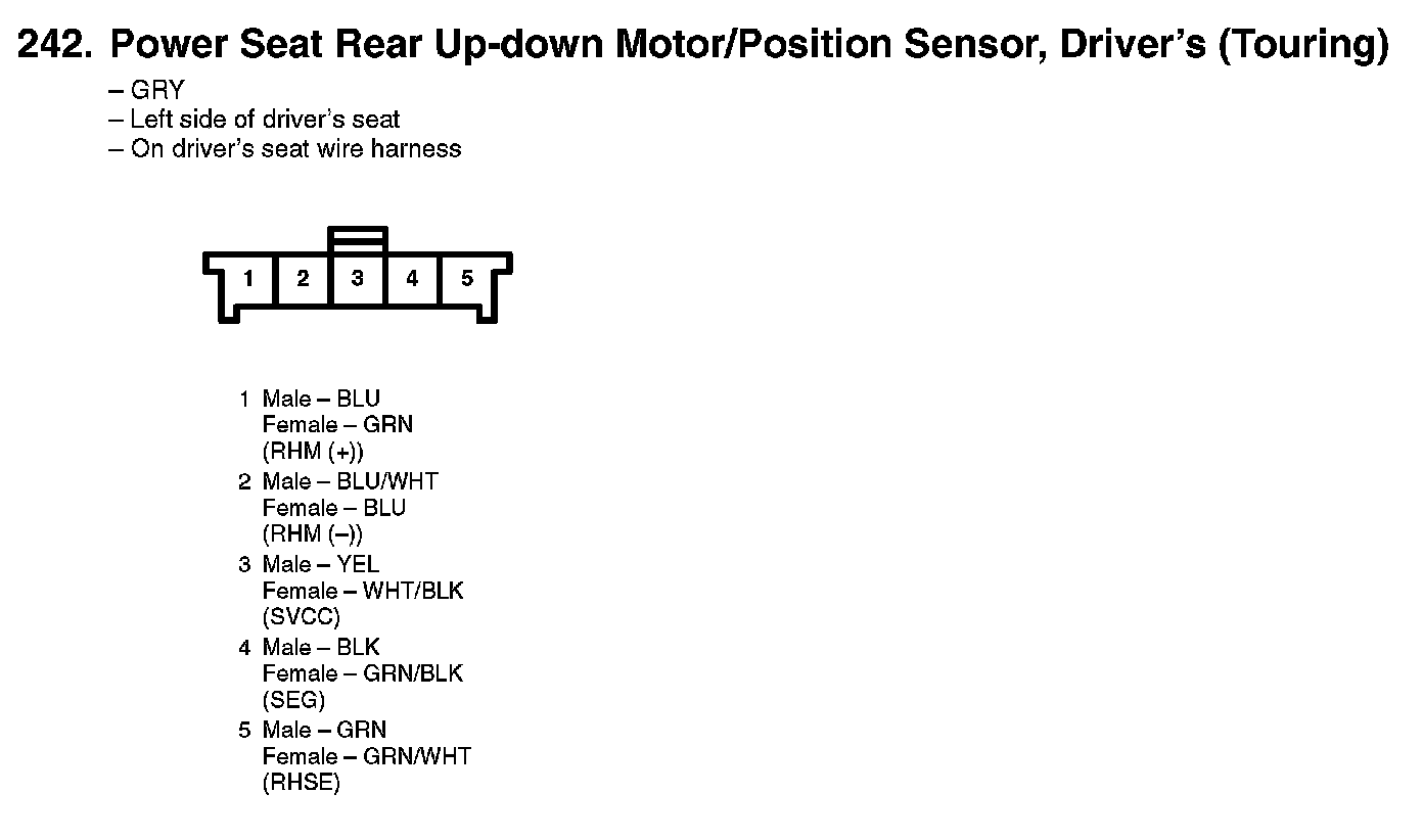 242. Power Seat Rear Up-down Motor/Position Sensor, Driver's (Touring):