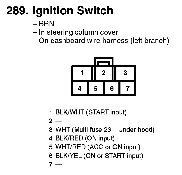 289. Ignition Switch: