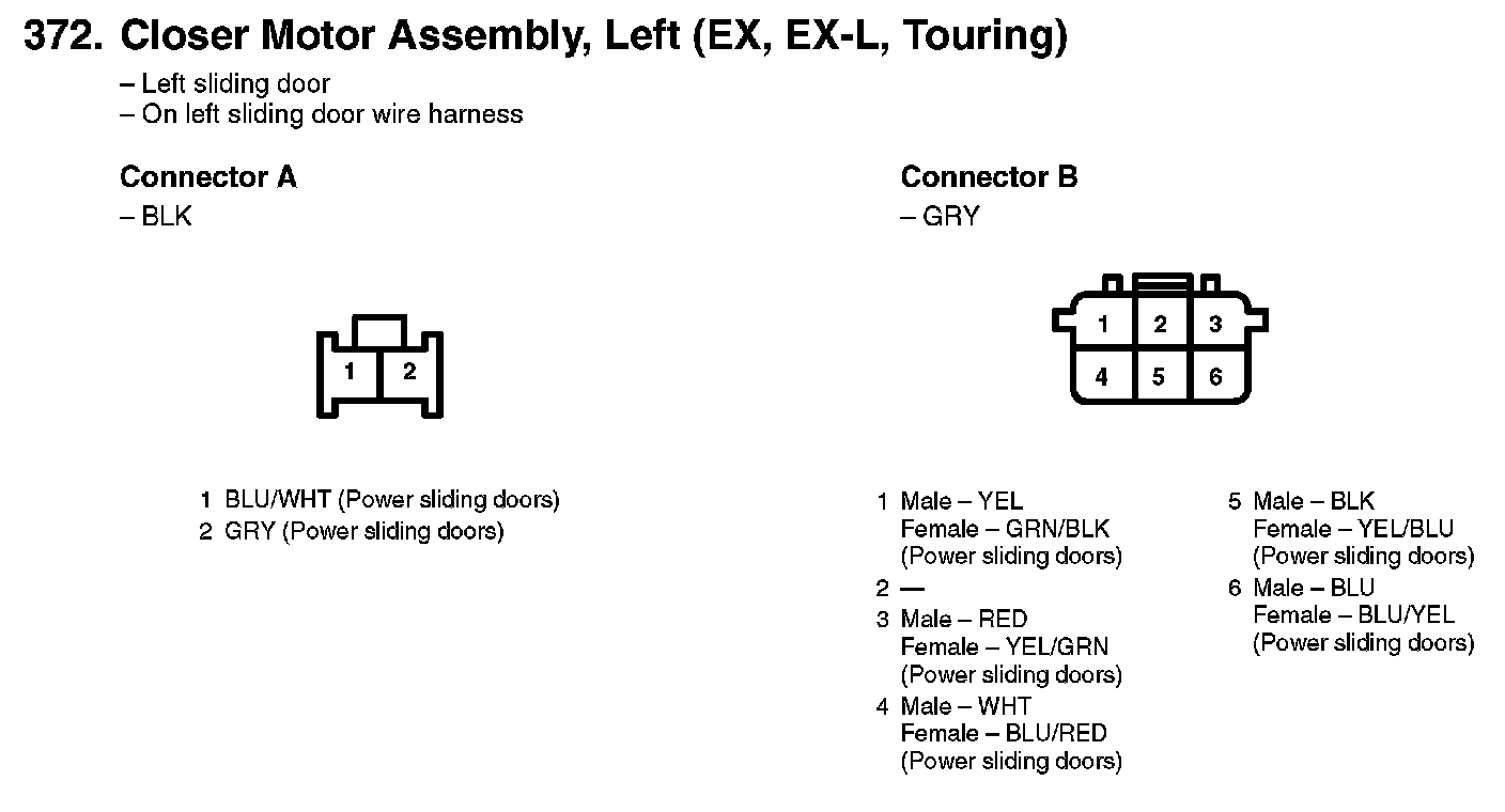 372. Closer Motor Assembly, Left (EX, Ex-L Touring):