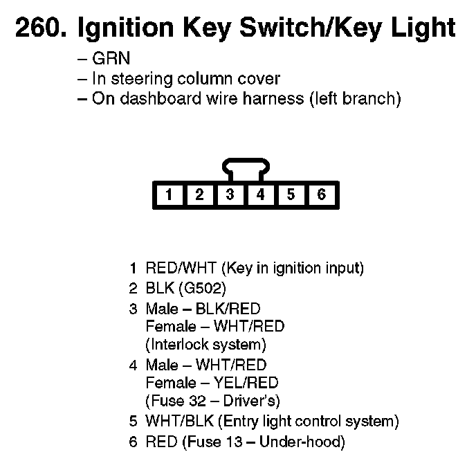 260. Ignition Key Switch/Key Light: