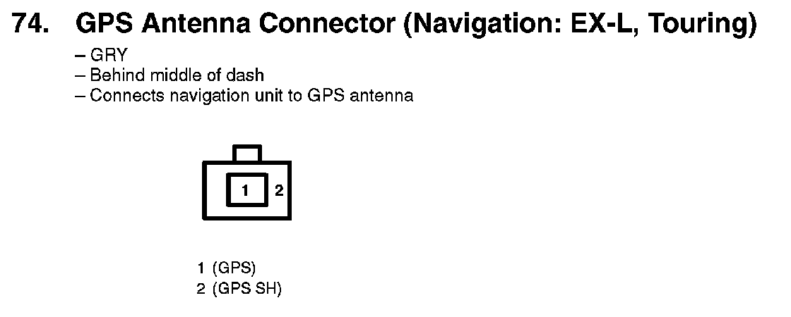 74. GPS Antenna Connector (Navigation: EX-L, Touring):