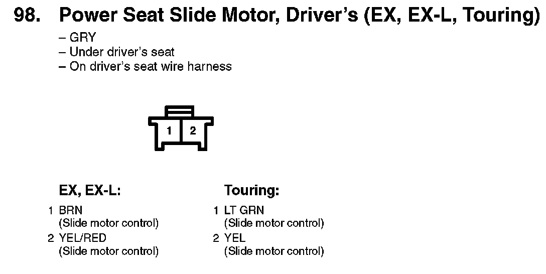98. Power Seat Slide Motor, Driver's (EX, EX-L, Touring):