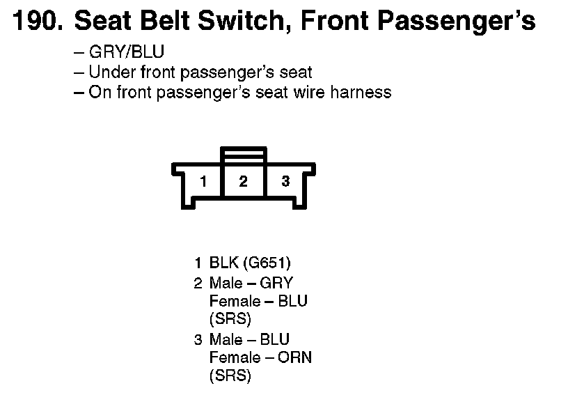 190. Seat Belt Switch, Front Passenger's: