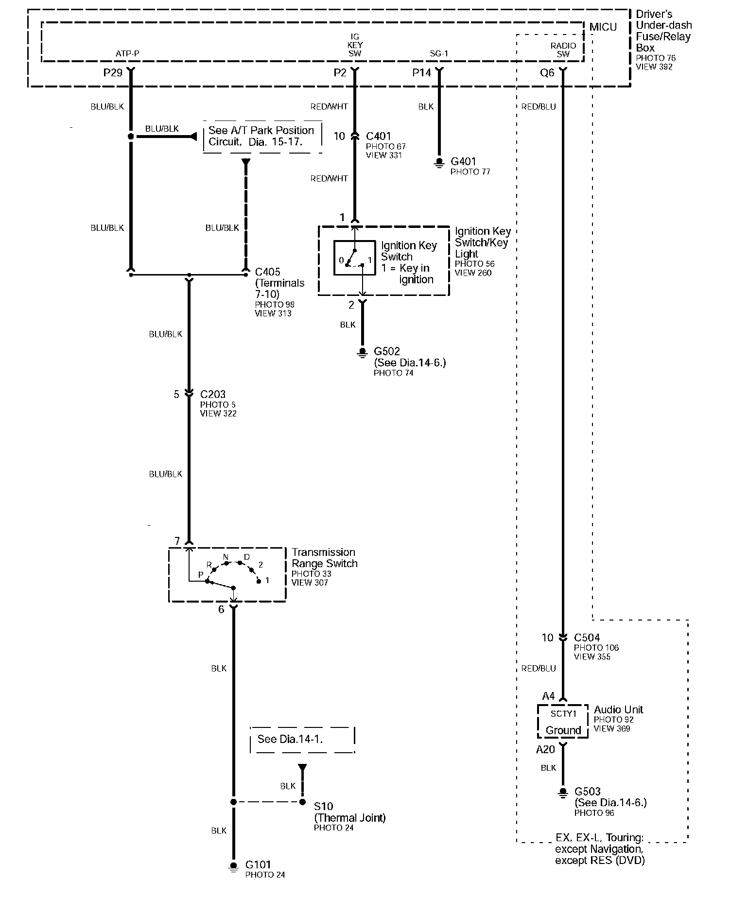 Connector Views: Connector terminal views (references to VIEWS) referred to within these diagrams can be found at Connector Views by View Number. Connector Views By View Number