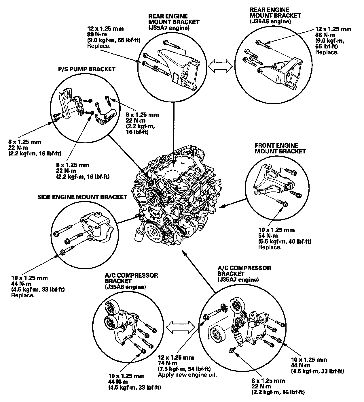 NOTE: Reinstall the mounting bolts/support nuts in the sequence given in the following steps. Failure to follow this sequence may cause excessive noise and vibration, and reduce engine mount life.