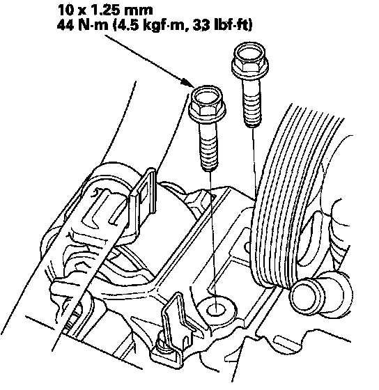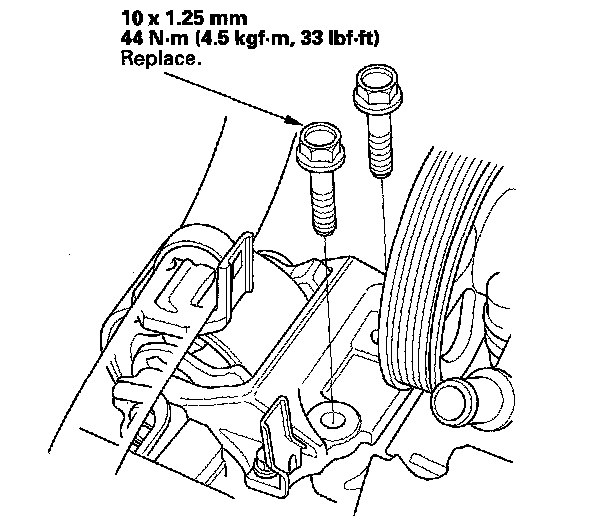 5. Install new mounting bolts into the upper half of the engine mount bracket. Tighten the bolts to the specified torque.
