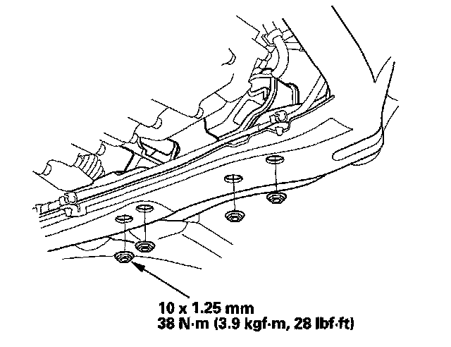 11. Tighten the nuts securing the transmission lower front mount and transmission lower rear mount.