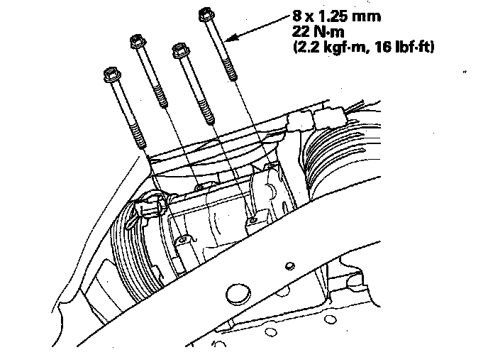 17. Loosen the mounting bolts for the upper half of the side engine mount bracket, then retighten them to the specified torque.
