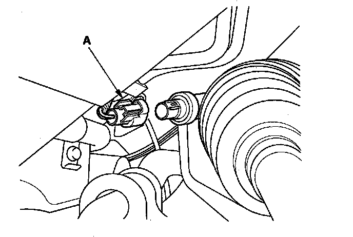 13. J35A7 engine: Tighten the rear engine mount bolt (A), then install the rear engine mount stop (B), and connect the rear active control engine mount (ACM) actuator connector (C).
