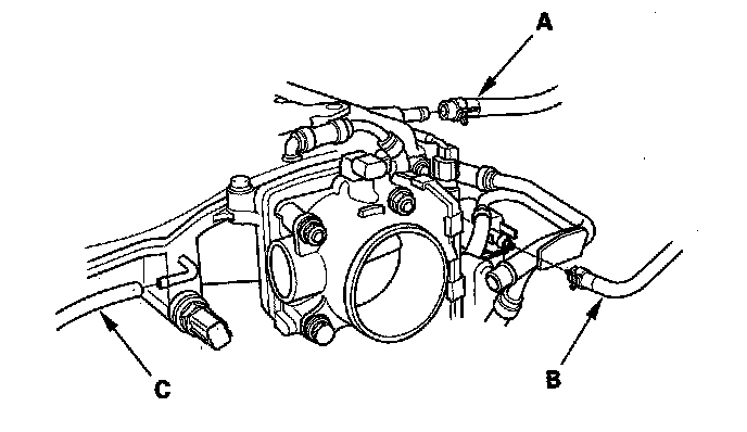 16. J35A6 engine: Remove the vacuum hose (C).