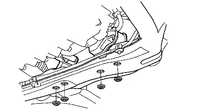 43. Remove the nuts securing the transmission lower front mount and transmission lower rear mount.