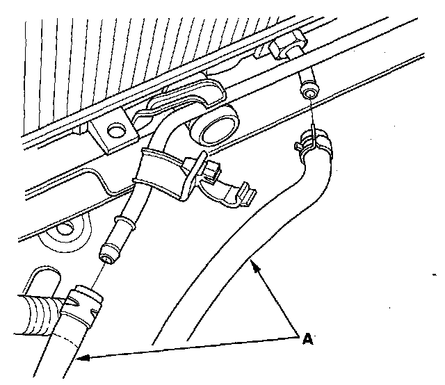50. Remove the ATF cooler hoses (A), then plug the ATF cooler hoses and lines.