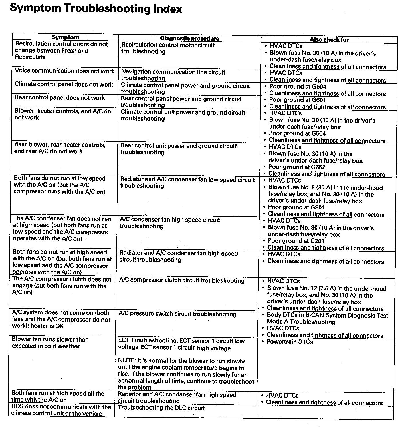 Symptom Troubleshooting Index: