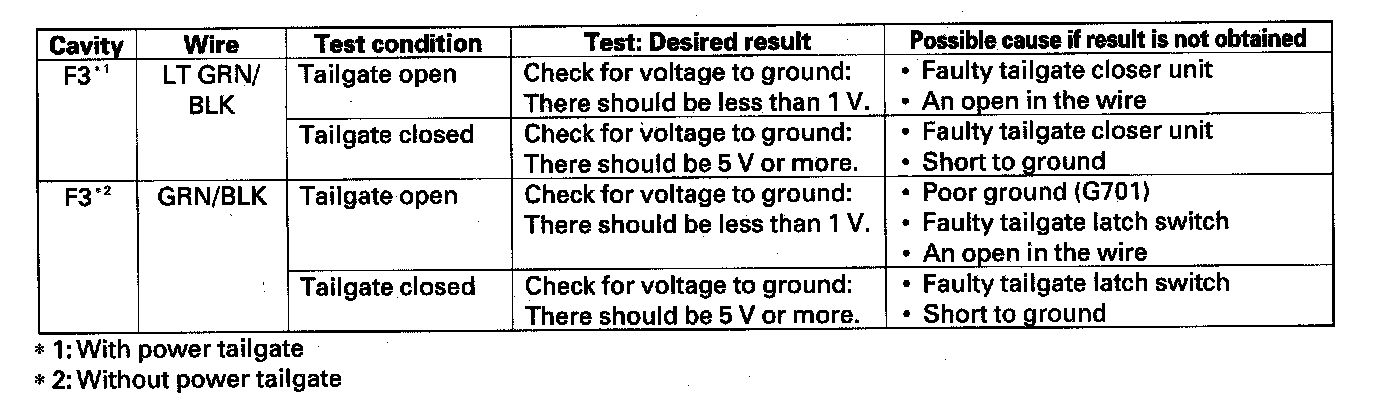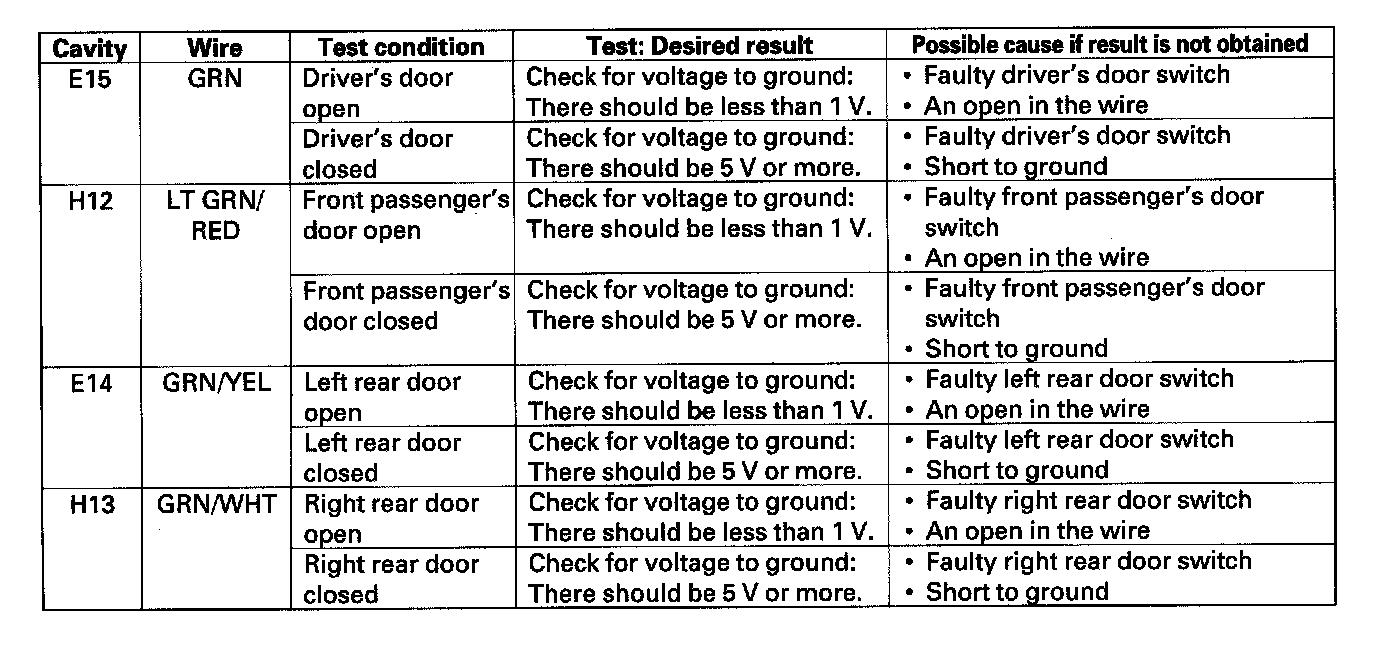 14. Reconnect the connector to the MICU-rear junction box. Turn the ignition switch ON (II) and make these input tests at the appropriate connectors on the MICU-rear junction box.