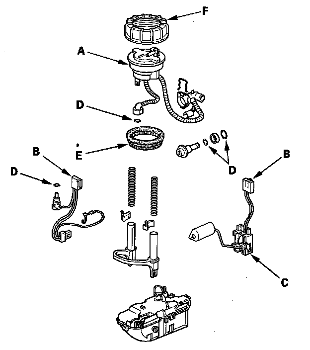 - When installing the fuel gauge sending unit (C), make sure the connection is secure and the connector is firmly locked into place. Be careful not to bend or twist it excessively.